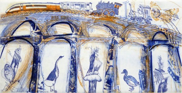 Acrylbilder, Materialdrucke, Aquarelle, Radierungen