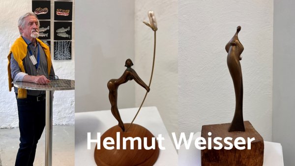 Wenn man Helmut Weissers Skulpturen betrachtet, beginnt man unwillkürlich zu rätseln, aus welchem Material sie wohl gemacht sind und was den Künstler zu seinen Ideen inspiriert hat. Das Ausgangsmaterial sind oft Fundstücke. Helmut Weisser sammelt die Gegenstände mit wachsamem Blick und erweckt sie in einer eigenen Welt zu neuem Leben. Immer wieder entstehen Frauenfiguren, die er teilweise mit Gold und Perlen verziert.